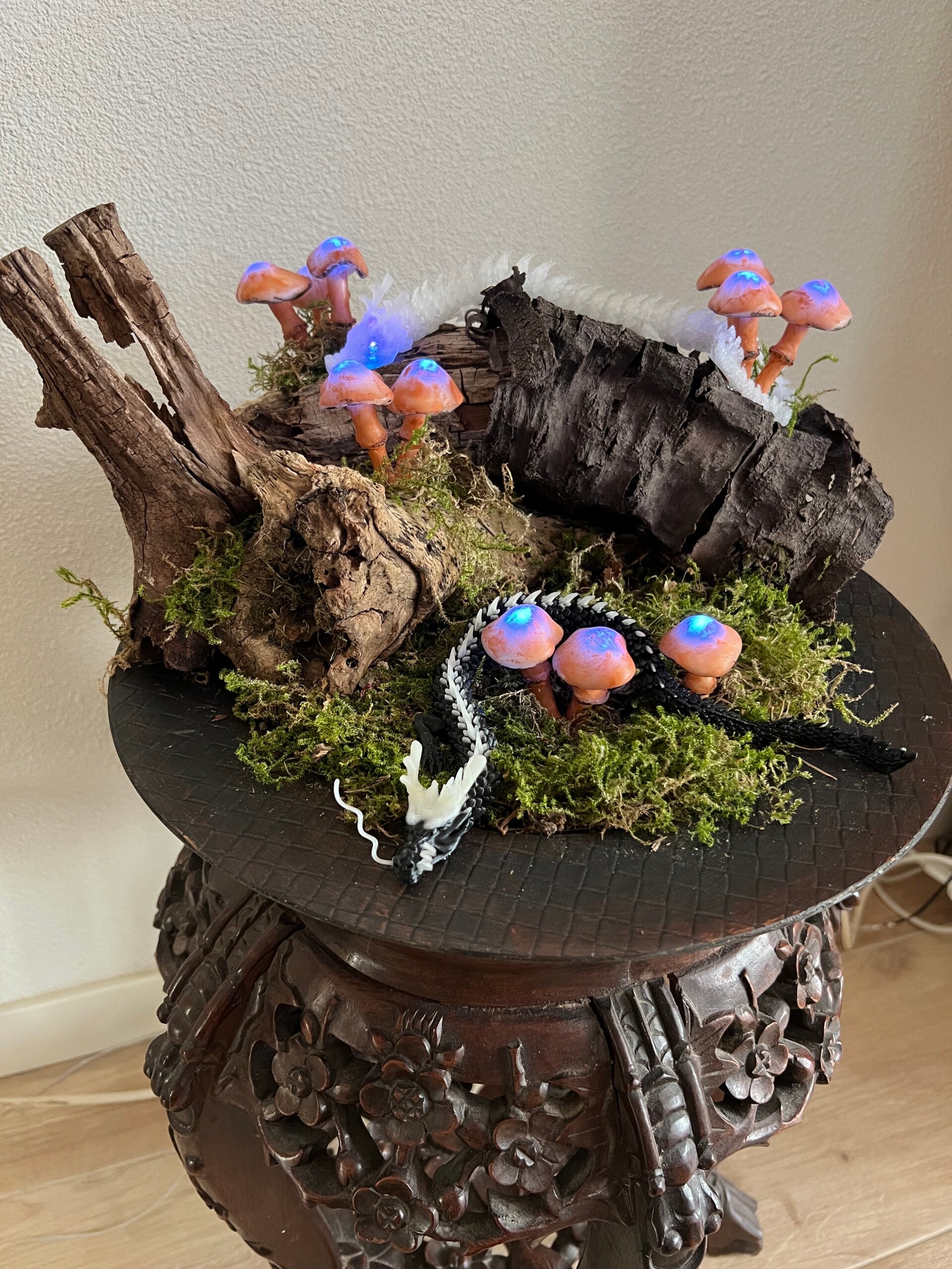 Voor een stoer dochtertje van een vriendin. In het werkje zitten glow-in-the-dark draakjes en ultraviolette lampjes
